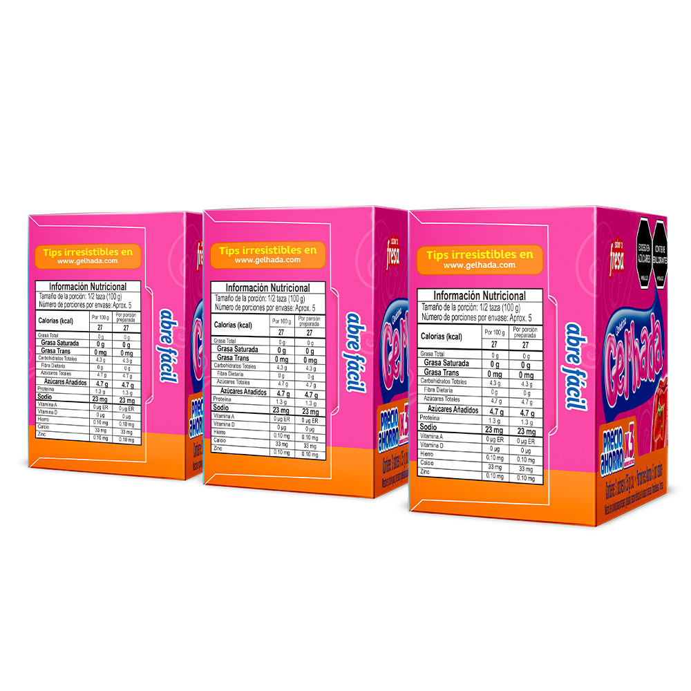 • La gelatina es una proteína pura, natural, procedente de materia prima animal, que contiene colágeno. Su consistencia firme y delicioso sabor hacen que Gel’hada sea la #1 en la mente del consumidor. Sabores surtidos. Rendidora. Postre económico para toda la familia.